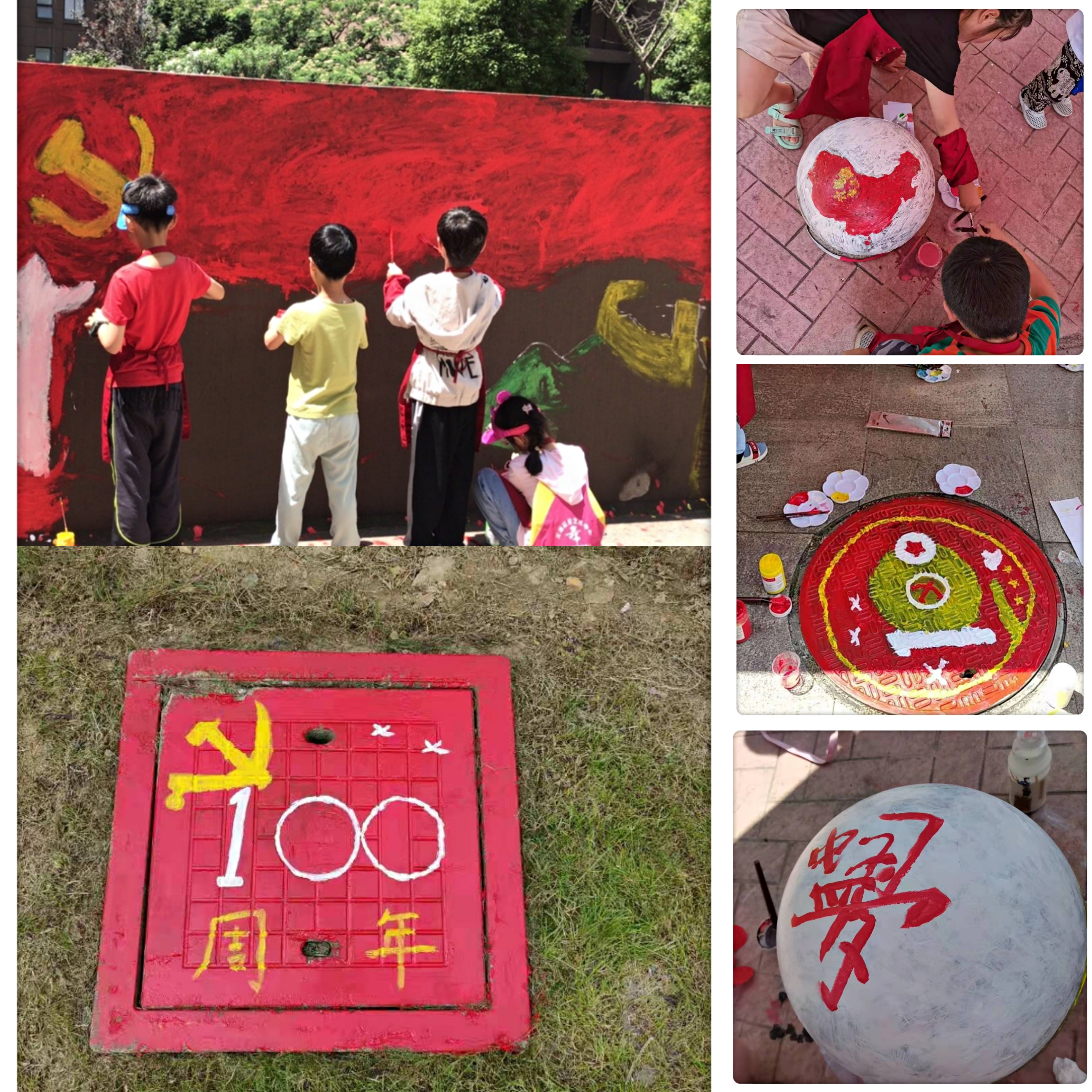 活動開始后,工作人員貼心地為小朋友們分發(fā)彩繪工具,看著調(diào)色盤里五顏六色的顏料,小朋友們都興高采烈地?fù)]舞起小刷子忙得不亦樂乎。在家長們的陪伴下,小朋友們以夢為筆、以愿為圖,用稚嫩的小手在磚墻、石墩、井蓋上繪制一幅幅積極向上、絢麗醒目的圖案,鮮艷的黨旗、中國版圖、中國夢等一幅幅“變臉”后的石墩、井蓋閃亮呈現(xiàn)在小區(qū),筆下畫出的不僅是孩子們的夢想,更是對黨深深的祝福!