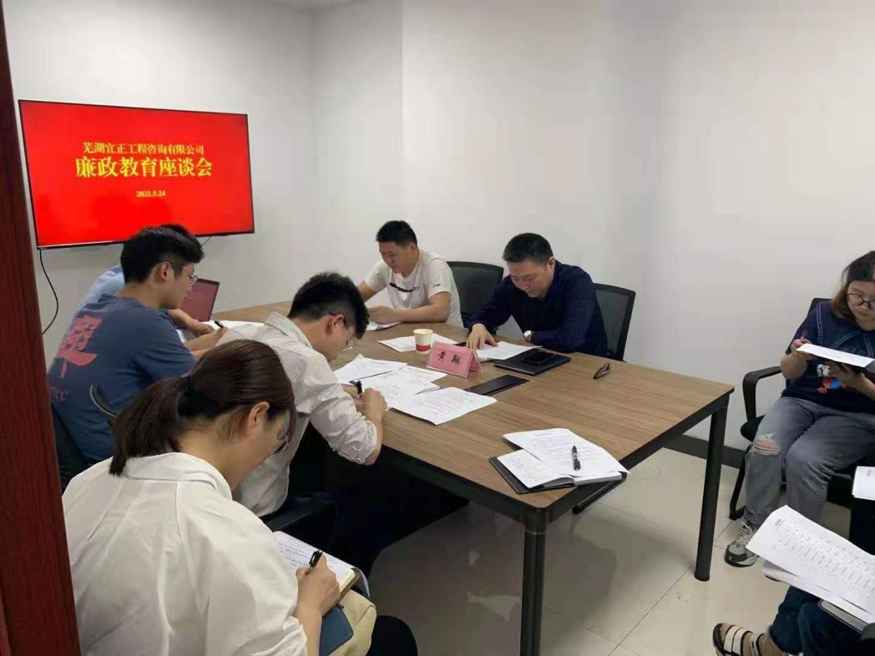 參觀活動結(jié)束后,由集團(tuán)公司紀(jì)檢負(fù)責(zé)人黃翔同志主持召開廉政教育座談會,公司全體員工參加了會議。座談會上,宜正公司匯報了近期各項工作開展情況,并組織公司全體員工簽訂廉潔自律承諾書。黃翔同志就黨風(fēng)廉政建設(shè)的重要性和目前面臨的嚴(yán)峻形勢進(jìn)行了系統(tǒng)闡述,并在思想和制度層面對公司員工提出了要求。一是要加強廉政學(xué)習(xí),樹立正確的世界觀、人生觀、權(quán)力觀和職責(zé)觀,加強法律法規(guī)學(xué)習(xí),警鐘長鳴,守好底線,不越紅線,提高全員的思想覺悟,把廉政教育貫穿于工作始終。二是要加強制度建設(shè),用制度管人,建立事前教育、事中規(guī)范、事后處罰的健全機制。
