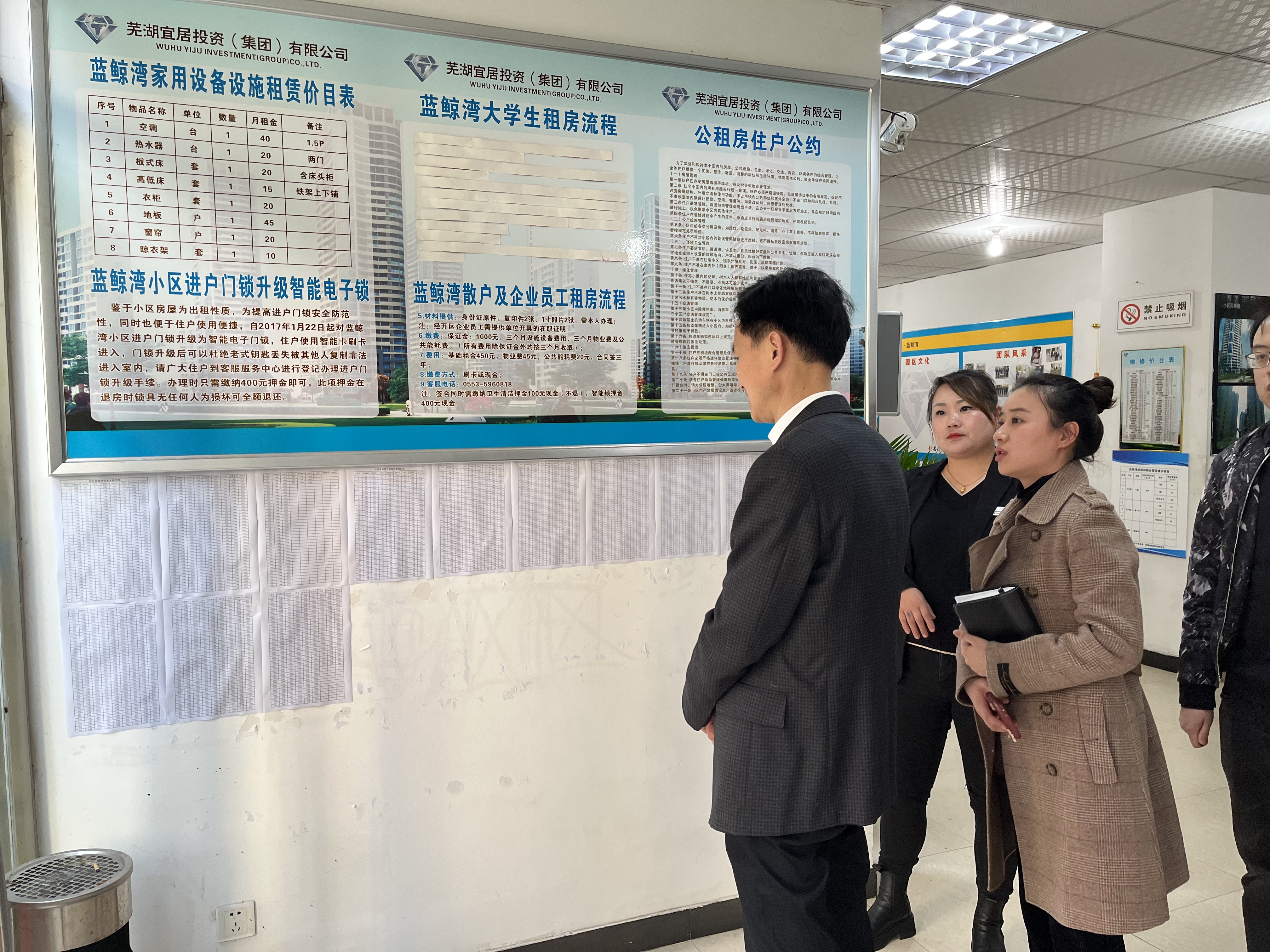 3月10日下午,集團公司黨委書記、董事長沈世躍一行,采取“四不兩直”方式實地調(diào)研藍鯨灣和春水灣公租房小區(qū),現(xiàn)場查看公小區(qū)的道路綠化、環(huán)境衛(wèi)生等情況,隨機抽查物業(yè)服務(wù)滿意度,進一步提升物業(yè)服務(wù)能力和水平。