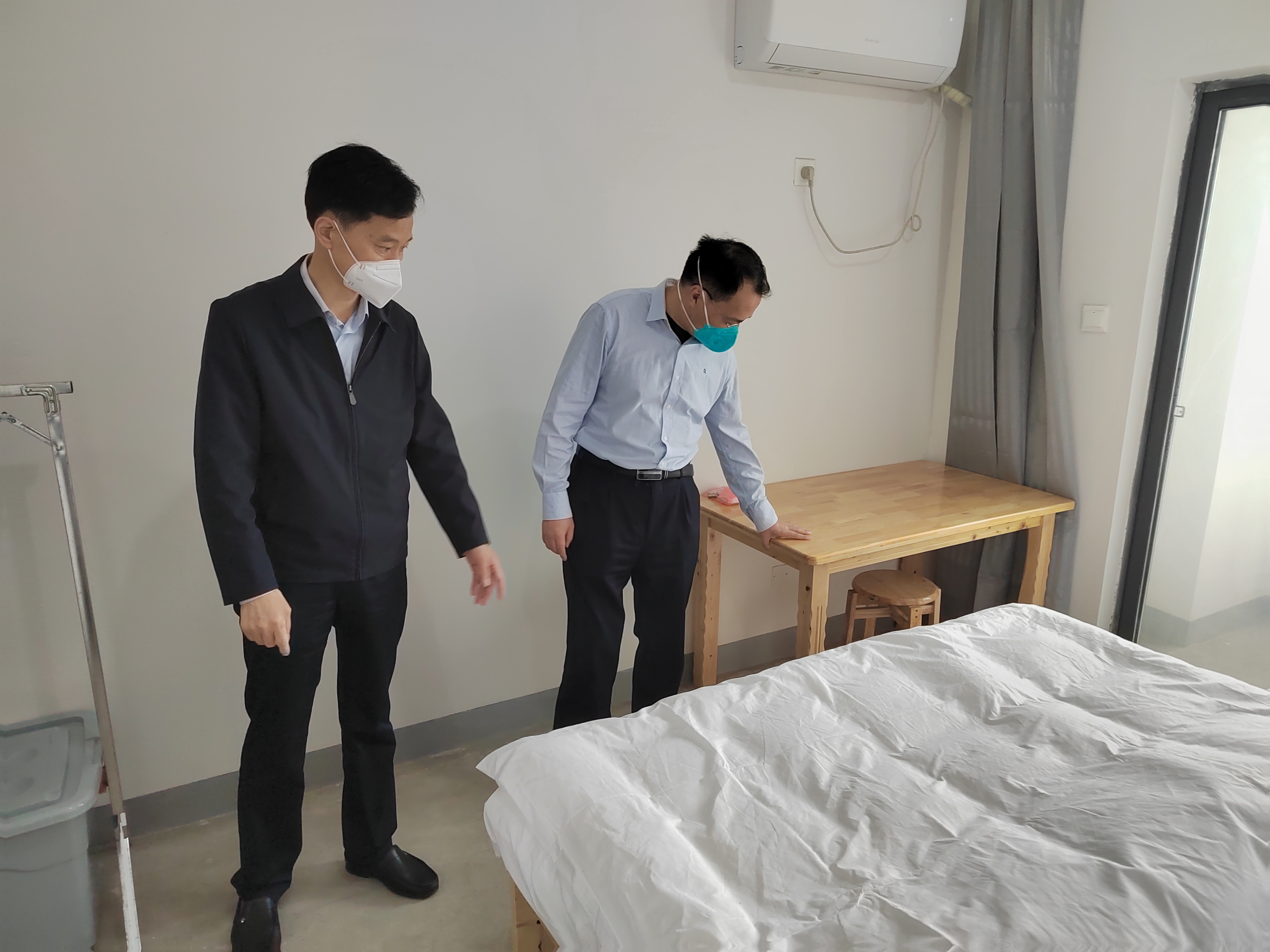 蔡毅副市長一行認(rèn)真聽取健康驛站改造建設(shè)情況介紹,詳細了解施工組織、安全、進度等方面情況,實地查看完成改造樓棟的房間設(shè)施設(shè)備配套、環(huán)境衛(wèi)生等情況。了解到公司面對時間緊、人手少、任務(wù)重的情況,頂住壓力、晝夜奮戰(zhàn),在最短的時間內(nèi)交付2684套隔離房源,蔡市長表示充分的肯定。