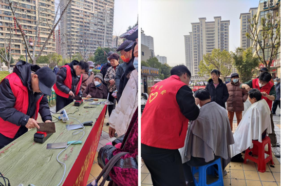 活動現(xiàn)場,志愿服務(wù)隊(duì)分成兩組,一組擺上磨刀器,磨刀的同時傾聽住戶對物業(yè)服務(wù)的建言,對美好生活的向往;一組為居民免費(fèi)理發(fā),理發(fā)師仔細(xì)聽取老人對發(fā)型的要求,積極予以滿足。精湛嫻熟的手藝和熱情周到的服務(wù),贏得了住戶們的稱贊。