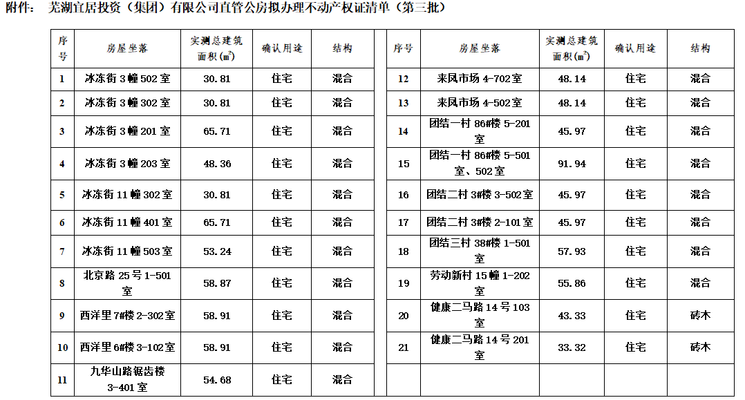 為加強我司的直管公房管理,根據市政府相關文件要求,我司近期將對直管公房分批次辦理不動產權證,現將第三批直管公房辦證清單向社會各界予以公告。