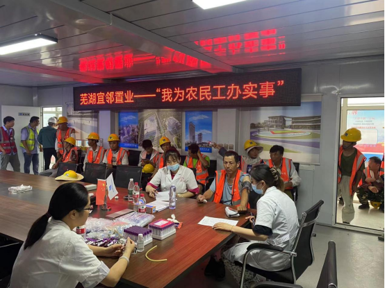 為深入貫徹落實“我為農(nóng)民工辦實事”實踐活動,7月13日,宜鄰公司黨支部聯(lián)合施工單位在江北集中區(qū)西灣花園宜鄰中心開展“健康體檢進工地、一心為鄰暖民心”高溫慰問活動。
