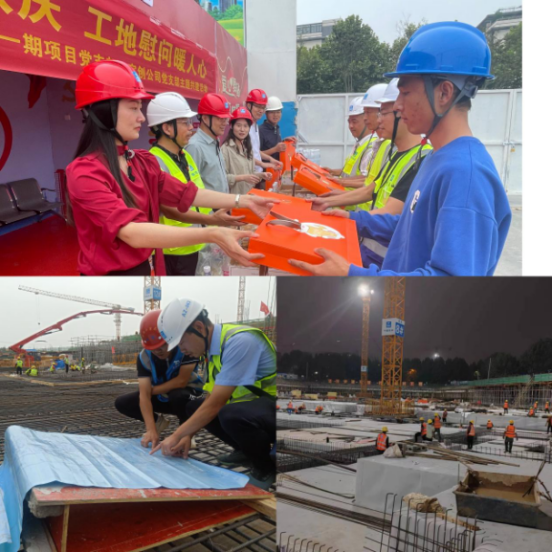 金秋九月,丹桂飄香,夢溪科創(chuàng)走廊項目現(xiàn)場熱火朝天,工地上一千多名建設(shè)者們正埋頭苦干,揮灑汗水,火力全開搶工期,施工進(jìn)度已超計劃工期。為做好“雙節(jié)”期間農(nóng)民工送溫暖,2023年9月28日上午,宜創(chuàng)公司黨支部聯(lián)合夢溪科創(chuàng)走廊項目黨支部共同開展農(nóng)民工送溫暖慰問活動,向全體工友們送上節(jié)日祝福,對他們?nèi)找箠^戰(zhàn),節(jié)假日無休,按下項目建設(shè)“加速鍵”表示感謝,并送上了月餅、礦泉水等慰問品。