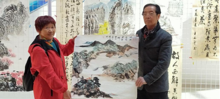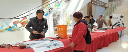 在筆會(huì)活動(dòng)現(xiàn)場,書畫協(xié)會(huì)老師們談笑風(fēng)生,揮筆而就,一張張書畫紙有序鋪陳,一陣陣墨香四散飄溢,山水花鳥、精筆妙墨,引來許多人圍觀和贊賞。