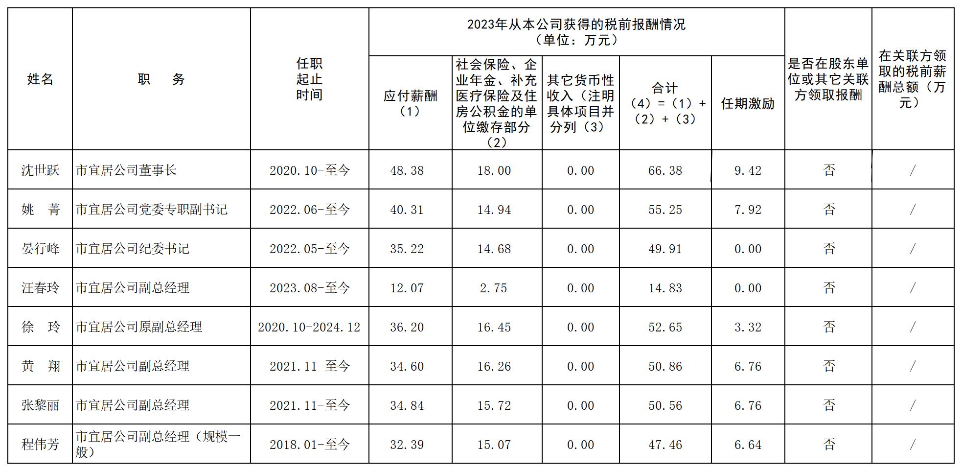 2023年度蕪湖宜居投資(集團)有限公司領導人員薪酬信息披露表