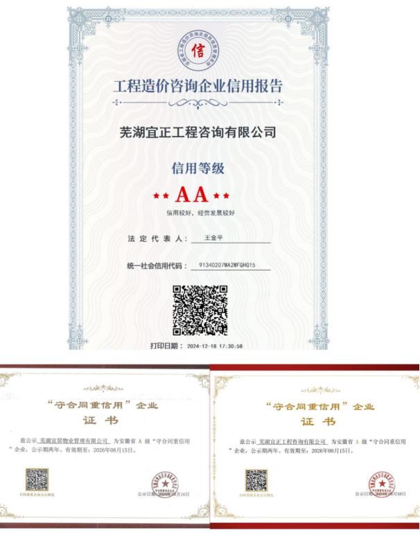 規(guī)范實施租賃信用獎懲。將誠信租房行為寫入公租房租賃合同,通過條款明確約定“采取虛報、隱瞞、偽造等手段騙取公共租賃住房”行為的違約責(zé)任,規(guī)范公租房管理。提高商戶誠信經(jīng)營意識。宜鄰中心始終秉持誠信經(jīng)營理念,簽訂租賃合同時,要求承租方就遵紀(jì)守法、信息真實性、服務(wù)保障、承擔(dān)責(zé)任與義務(wù)等做出信用承諾。打造行業(yè)服務(wù)信用標(biāo)桿。下屬宜正公司在蕪湖市公共資源交易信用管理平臺中介機構(gòu)服務(wù)質(zhì)量信用等級為最高A級,先后通過ISO9001質(zhì)量管理體系認證和AAA企業(yè)信用認證,獲蕪湖市灣沚區(qū)市場監(jiān)督管理局認定的安徽省A級“守合同重信用”企業(yè)榮譽。創(chuàng)新“信用+”產(chǎn)品服務(wù)。宜居物業(yè)依托“信用+物業(yè)”打造誠信物業(yè)企業(yè),在2024年蕪湖市物業(yè)服務(wù)企業(yè)信用等級評定中持續(xù)獲得級別最高的“A+級”稱號,同時榮獲安徽省A級“守合同重信用”企業(yè)榮譽。