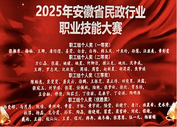 6月28日上午,由安徽省民政廳聯(lián)合省人力資源社會保障廳、省教育廳、省總工會、團(tuán)省委、省婦聯(lián)等部門舉辦的2025年全省民政行業(yè)職業(yè)技能大賽決賽在合肥落下帷幕。經(jīng)區(qū)級、市級、省級三輪選拔比拼,宜居養(yǎng)老公司周蓉、趙新晨兩名員工榮獲養(yǎng)老護(hù)理員職業(yè)競賽項(xiàng)目二等獎。